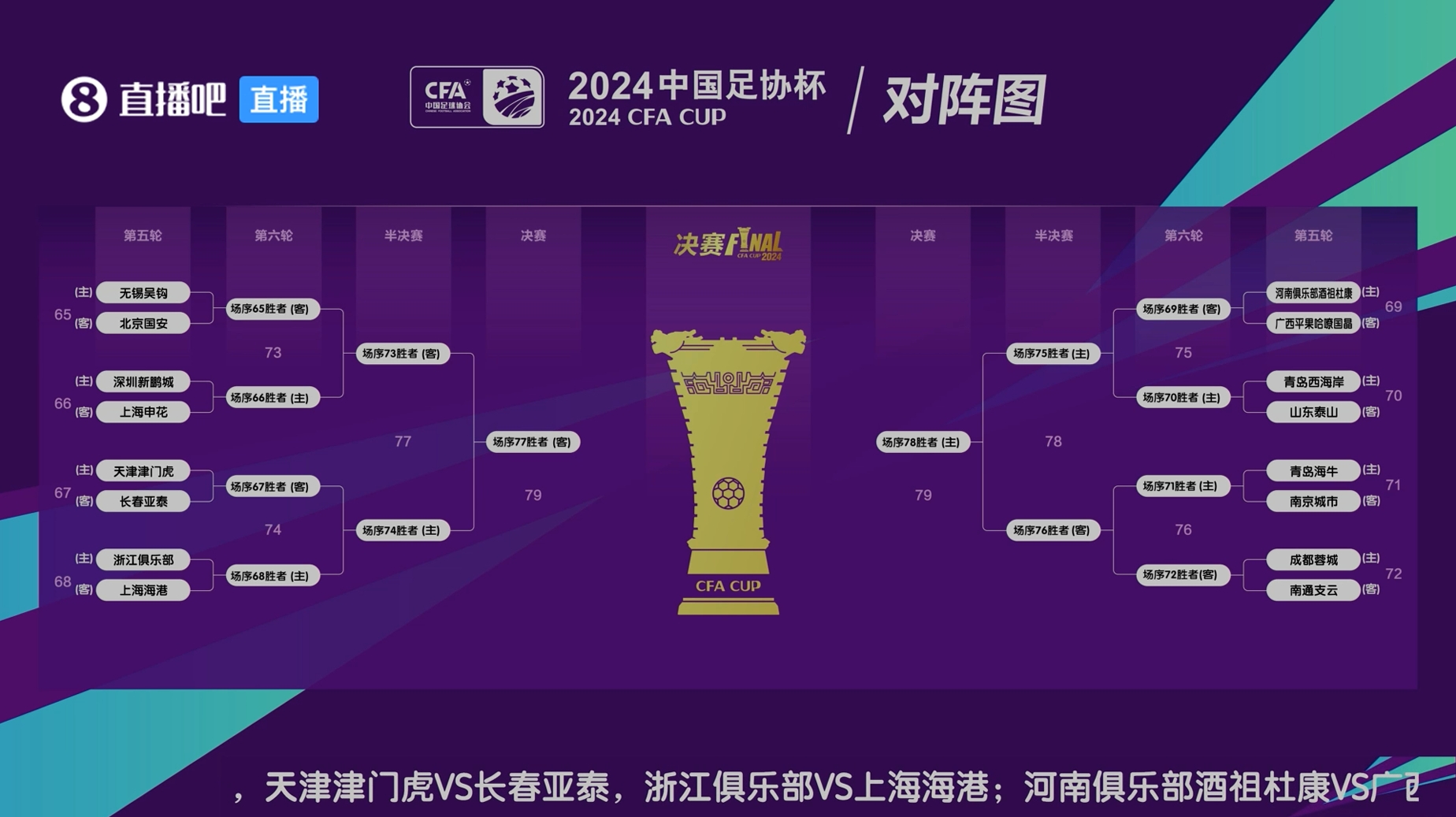 6月25日讯 经过抽签,足协杯16强在下一阶段的落位正式确定。虽然第五轮将面对的是中甲球队无锡吴钩,但北京国安所在的上半区里还有浙江队、上海申花、上海海港等中超强队,以及“京津德比”对手天津津门虎。