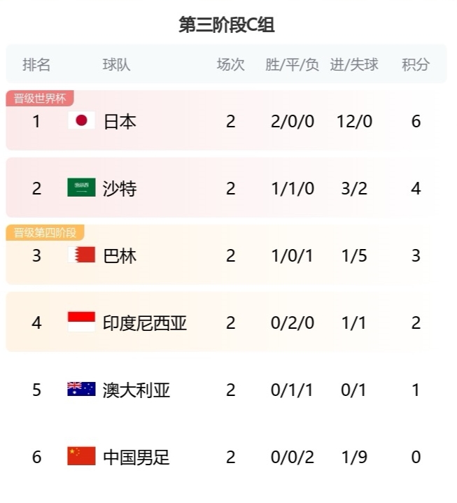 09月11日讯 世预赛亚洲区第二轮的比赛全部结束,18强赛三个小组的最后一名都是两连败0分。